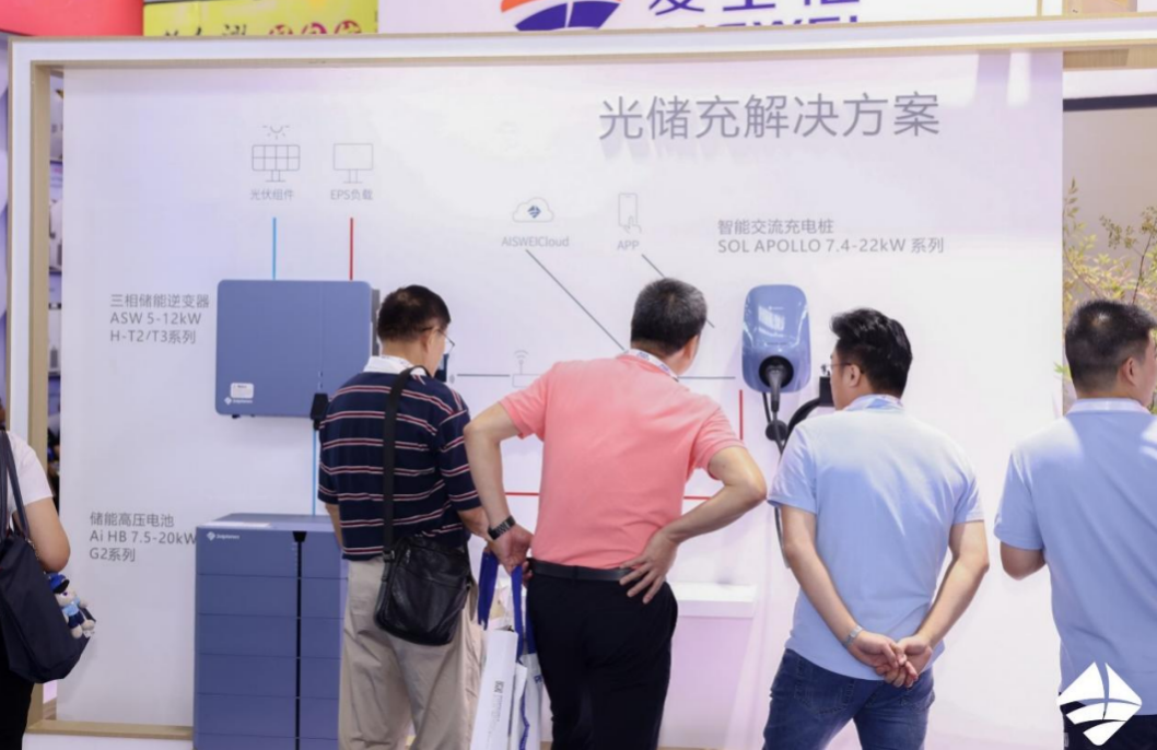 爱士惟还展示了适用于户用场景的光储充解决方案。该方案采用三相储能逆变器ASW 5-12kW H-T2/T3系列,搭配储能高压电池Ai-HB 075A-200A G2系列和智能交流充电桩SOL APOLLO 7.4-22kW系列,全面满足家庭绿电需求。
