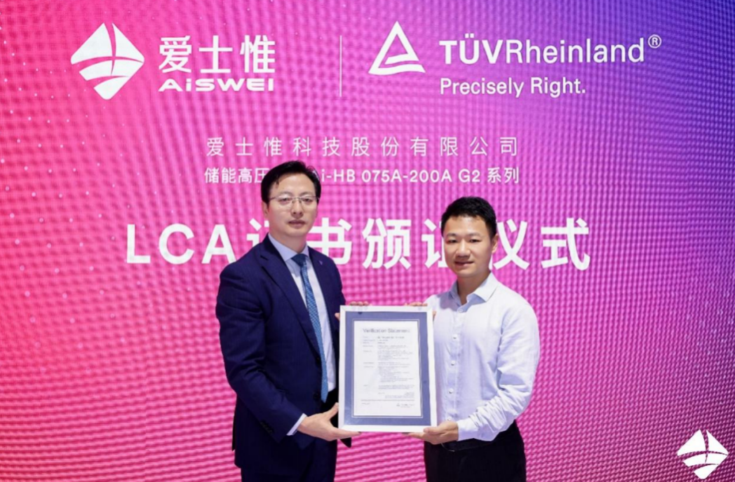 德国莱茵TÜV为储能高压电池Ai-HB 075A-200A G2系列颁发LCA证书