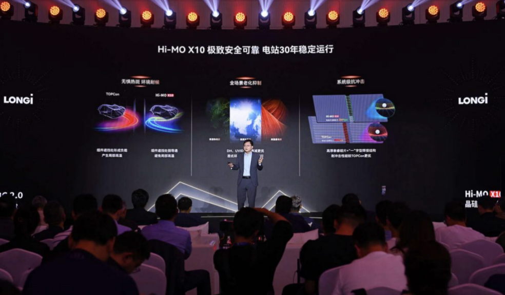 隆基绿能董事长钟宝申在主题演讲中表示:“这一壮举的完成,就有隆基的坚持。只有不断超越、不断战胜自己,才能走出当前行业困局,才能穿越周期,才能实现企业的可持续发展。”