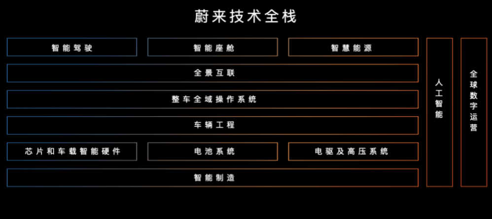 首先我们所在的行业就是智能、电动、汽车三个大的行业一起在变革。智能还包括软件、硬件。我们的产品服务社区,我们的商业模式也是涵盖多方面。而且我们的业务覆盖到不光是蔚来一个品牌。我们的平台已经发布了两代平台的产品,即将交付第三代平台的产品,还有多区域,蔚来已经在全球7个国家提供产品和服务。