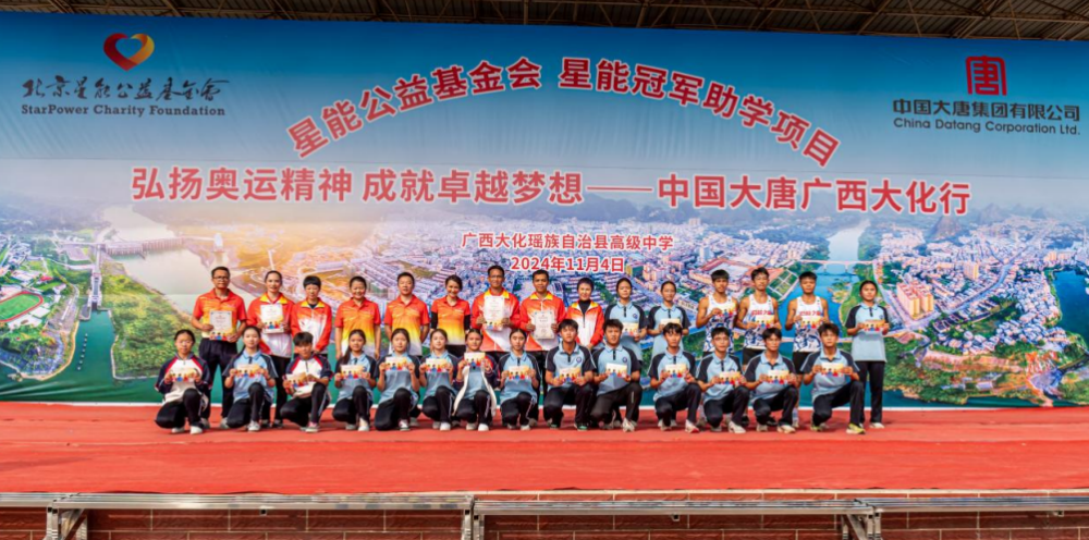 11月4日,中国大唐集团有限公司携手北京星能公益基金会“弘扬奥运精神,成就卓越梦想”暨“守护红水河”主题公益活动在广西大化瑶族自治县成功举办。