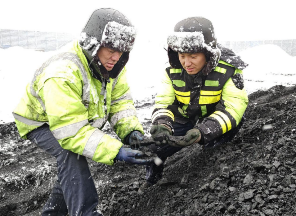 七台河发电公司燃料战线人员检查燃煤冰冻情况。张莹 摄