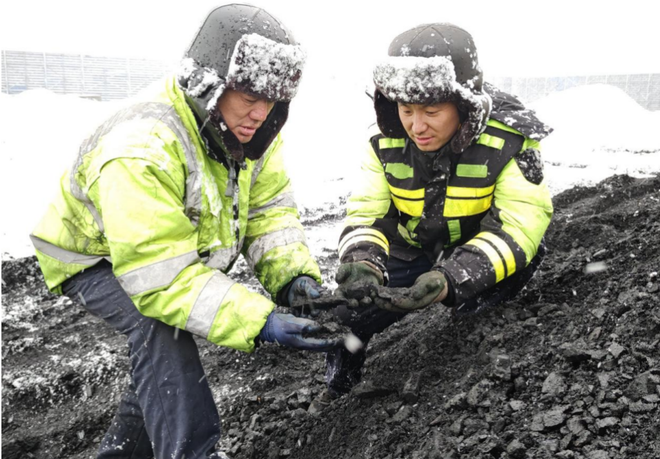 七台河发电公司燃料战线人员检查燃煤冰冻情况(张莹 摄)
