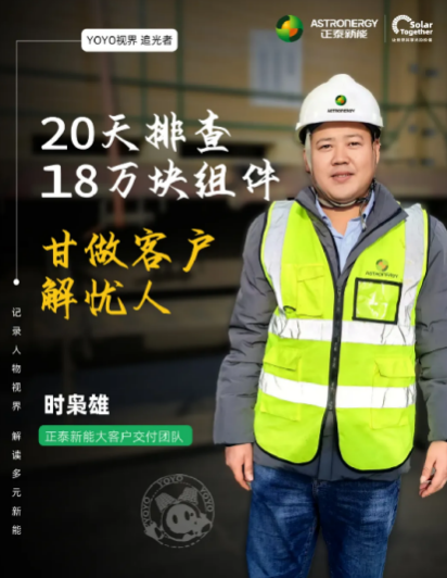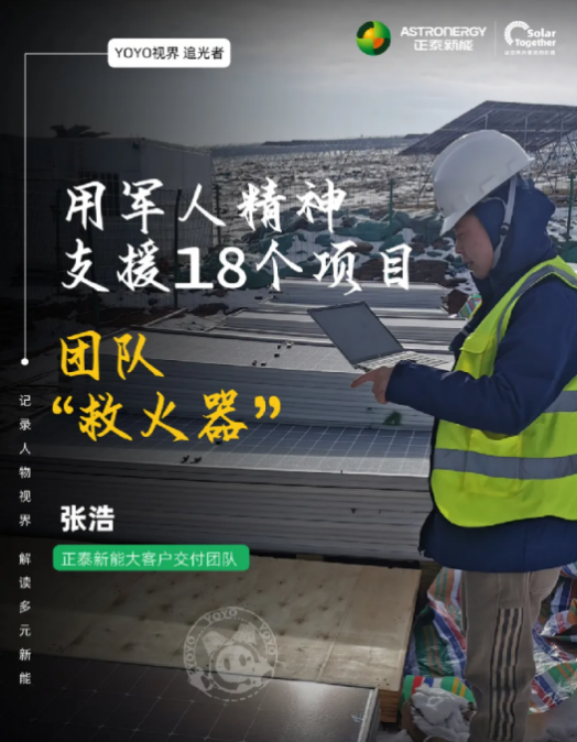 在加入正泰新能前,张浩曾应征入伍,在北京负责地勤保障,训练有素的两年军旅生涯磨练了他的体魄和意志。作为曾经的军旅硬汉,2023年,张浩加入了正泰新能,正式成为售后大客户交付团队的一员。这个听起来高大上的“职位”,不仅仅是个名称和荣誉,更意味着一种责任,意味着辛劳、繁琐和“无所不能”。