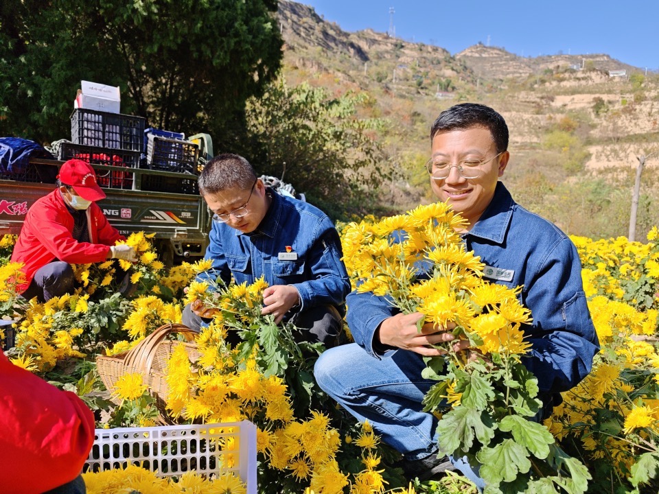 近日,甘肃省陇南市西和县大桥镇李坪村种植的金丝皇菊竞相绽放,金黄色的花朵在阳光下熠熠生辉,迎来了一年一度的丰收。为确保成熟菊花能够及时加工处理,国网甘肃省电力公司驻大桥镇帮扶工作队抢抓时机,深入田间地头,与村民们一道采摘金丝皇菊,并通过多元化渠道帮助销售,进一步提高村民收入。