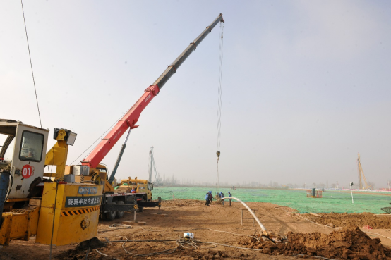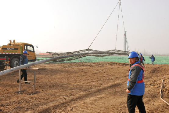 2024年11月20日,在宁夏回族自治区石嘴山市惠农区庙台乡东永固村烽燧750千伏变电站新建工程现场,国网宁夏电力有限公司工作人员正在进行灌注桩施工首例试点作业,标志着烽燧750千伏输变电工程正式开工建设。
