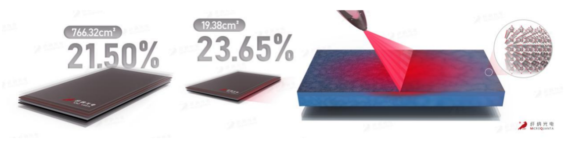 纤纳光电的“冻晶”技术则彻底颠覆传统,通过超快激光的精确深度调控与高精平台及光束角度的精心设计,实现了在钙钛矿晶体表面仅十几纳米范围内的瞬间局部退火,而体相晶体则保持低温稳定(图2)。这一技术创举,在微观层面构建出陡峭的温差梯度,精准钝化表面缺陷的同时,避免了体相晶体的过度生长,从而推动大面积钙钛矿组件效率迈向新高度,更标志着在钙钛矿GW时代征途上,公司稳效协同战略迈上一个新的台阶。相关技术成果已向中国国家知识产权局提交发明专利申请。