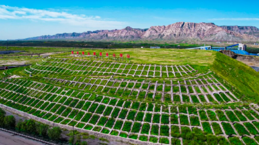 在乌海能源公司利民公司矸石山治理现场,一排排光伏板堆砌成错落有致的“梯田”,在阳光照射下熠熠生辉。高低错落的丘陵被绿草鲜花填满,蝴蝶和蜻蜓在花丛间翩翩起舞,这里的每一寸土地都展现着人与自然和谐共生的美好愿景。从乌金到绿金,从植被贫瘠的矸石山到生机勃勃的沃土良田,乌海能源公司系统治理了735万平方米矿区环境。