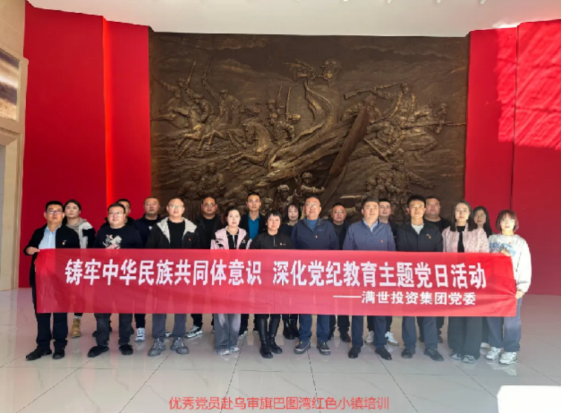 近日,满世投资集团党委组织党支部书记、年度优秀党员和优秀党务工作者深入乌审旗巴图湾红色文化小镇开展“铸牢中华民族共同体意识、深化党纪教育”主题党日活动。