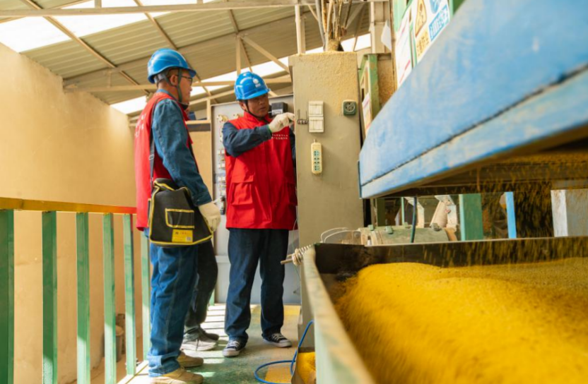 9月19日,国家电网蒙东电力(敖汉旗四家子)蒙古马共产党员服务队到小米加工企业检查安全用电隐患。张茗茜 摄