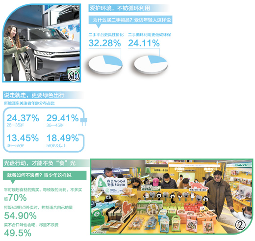 开新能源车、淘二手好物、选小份菜……这届年轻人,正在爱上绿色消费。网络调查显示,年轻消费者更愿意为可持续品牌和产品买单,超半数受访者表示会在二手平台消费。这既是以实际行动践行环保理念,也包含着“可以买贵的,不能买贵了”的理性和务实。