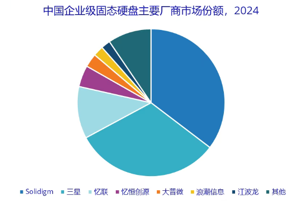 根据IDC在2025年5月发布的《中国半年度企业级固态硬盘市场(2024下半年)跟踪》报告, 中国企业级固态硬盘市场在2024年得到修复,市场规模达到62.5亿美元(450亿元人民币),同比增长187.9%,市场份额排名靠前的企业的企业依次为Solidigm、三星、忆联信息、忆恒创源、大普微、浪潮信息(000977.SZ)和江波龙(301308.SZ)。而大普微市场份额排名从2023年的第四降至第五,在国内企业中由第二变为第三,市场份额相比2023年有所下降。
