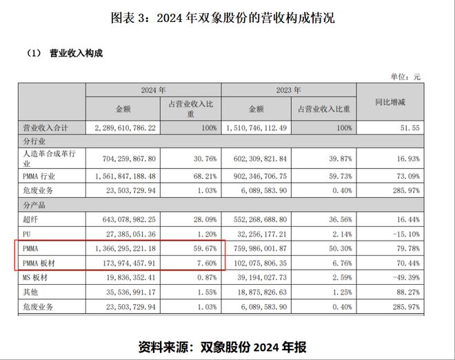 而同行企业中,双象股份(002395.SZ)早在2020年便实现技术的突破,成为国内首家实现规模化量产高端光学级PMMA材料的内资企业,2024年其PMMA产品的营收规模突破10亿元。