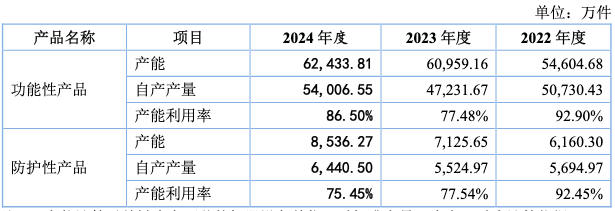 报告期内,鼎佳精密的功能性产品产能利用率从92.90%降至86.50%、防护性产品产能利用率则从92.45%降至75.45%。