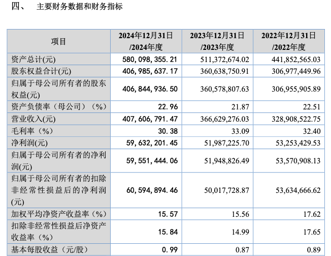 据招股书(上会稿),2022年-2024年(简称报告期),鼎佳精密营业收入分别为3.28亿元、3.67亿元、 4.08亿元,归母净利润分别为5357万元、5195万元、 5955万元。虽然营收逐年增长,但2023年净利润同比下降3.03%,显示公司业绩波动性。