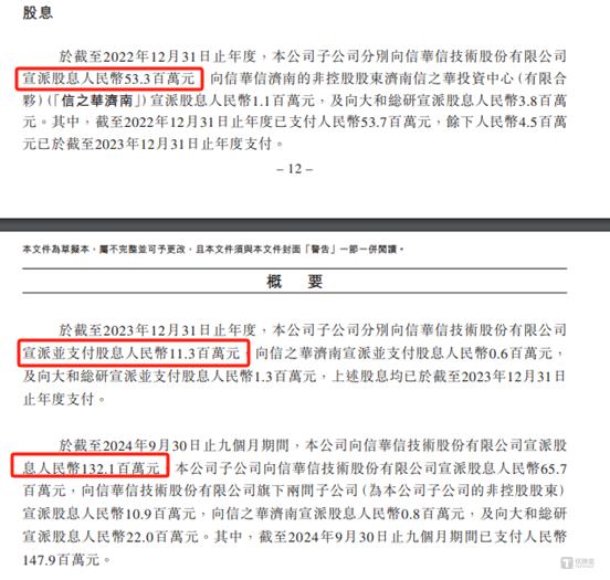 需要说明的是,信华信从日本地区赚到的钱,却在IPO申报前夕大举分给了股东。报告期内,信华信现金分红的金额分别为5330万元、1130万元、14790万元,合计为21250万元,而该时间段内,信华信合计赚到的利润为57272.7万元,这也意味着,近两年零九个月,信华信将公司赚到近40%的利润全部分给了股东,特别是2024年前三季度,信华信不仅将这年前9个月赚到的钱分给了股东,反而还倒贴了2700多万元。那么,为何信华信要在IPO前夕大举分红?以及大举分红后,为何又要港股IPO募资?