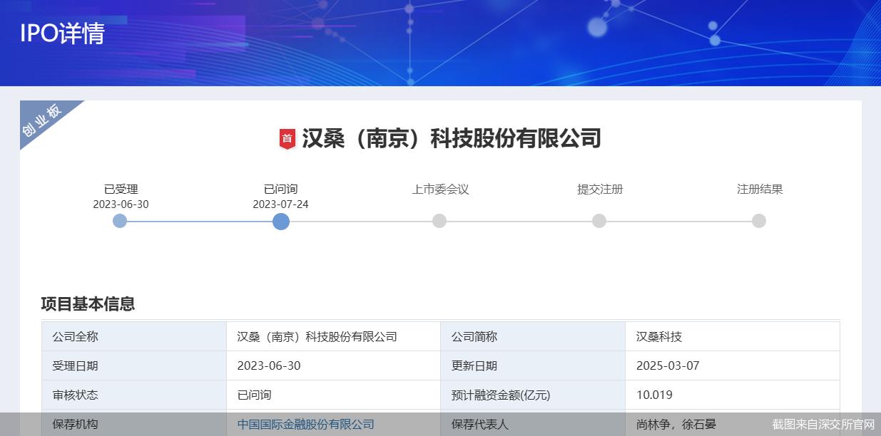 根据安排,汉桑科技创业板IPO将于3月14日上会,在此之前,公司已“卡”在问询阶段逾一年半的时间。深交所官网显示,公司创业板IPO于2023年6月30日获得受理,当年7月24日进入问询阶段。