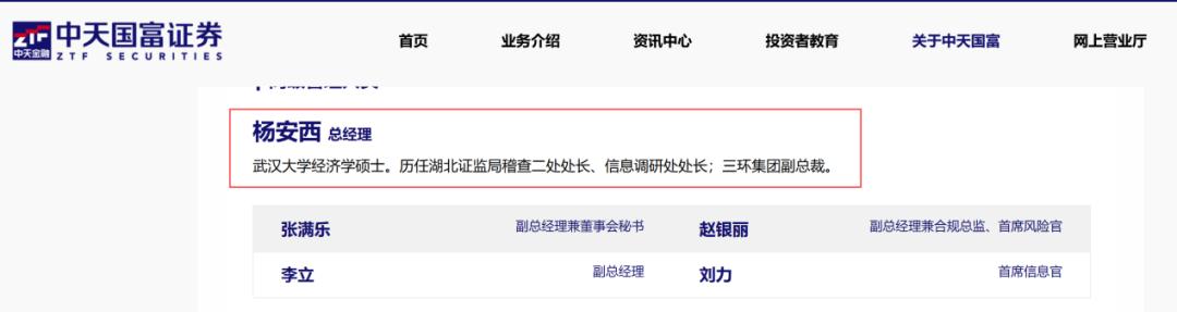 近日,中天国富证券在其官网上悄然更新了管理层名单。官网显示,去年1月官宣任职的中天国富证券总经理赵丽峰已离任,原副总经理杨安西正式接任了总经理职务。
