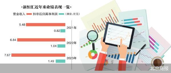 最新财务数据显示,2021—2023年,新恒汇实现营业收入分别为5.48亿元、6.84亿元和7.67亿元,对应实现扣非后归属净利润分别为8168.42万元、1.04亿元和1.49亿元。