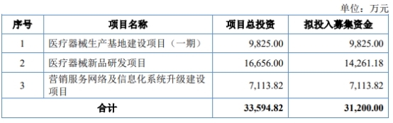 奇致激光原拟募集资金31,200.00万元,用于医疗器械生产基地建设项目(一期)、医疗器械新品研发项目、营销服务网络及信息化系统升级建设项目。
