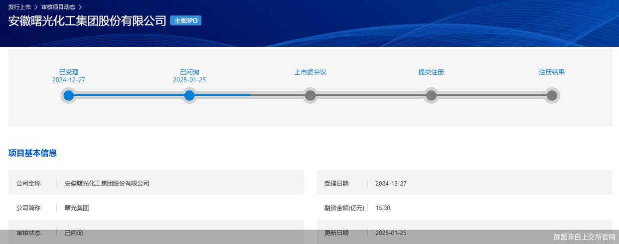 上交所官网显示,曙光集团主板IPO于1月25日进入问询阶段。
