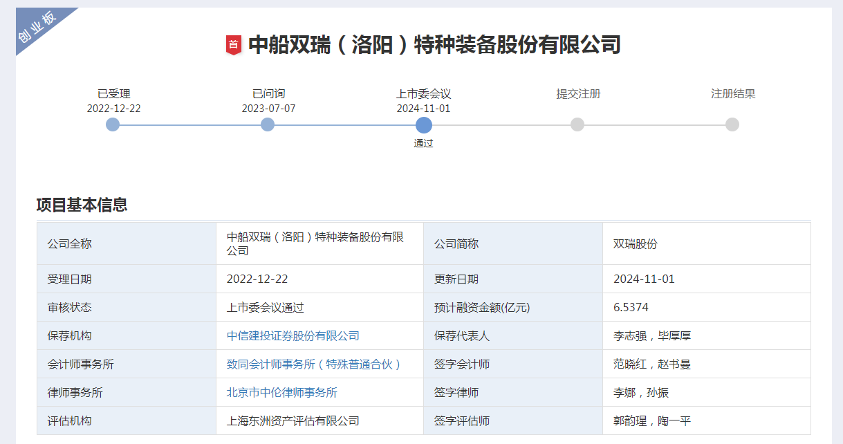 据深交所官网,中船双瑞(洛阳)特种装备股份有限公司(下称“双瑞股份”)近期首发获通过,拟募集资金6.54亿元。然而,该公司正面临业绩增速下滑、关联交易错综复杂、经营性现金流转负等多项隐忧。