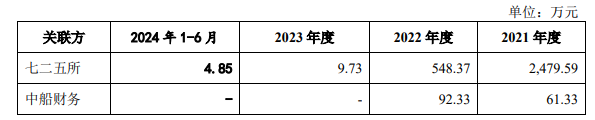 2021年度、2022年度、2023年度,公司向七二五拆借资金产生的利息分别为2479.59万元、548.37万元、9.73万元;2021年度、2022年度,公司向中船财务拆借资金产生的利息分别为61.33万元、92.33万元。