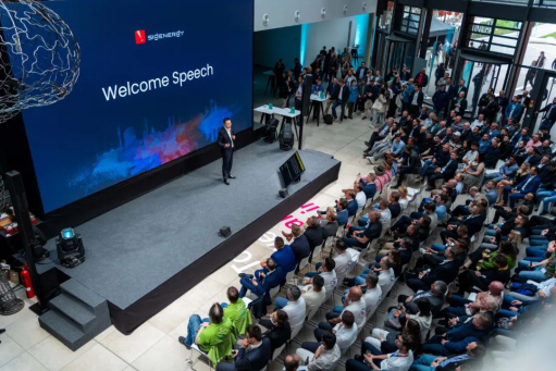 Intersolar Europe 2025展会期间,思格新能源在慕尼黑Brainlab Tower举办盛大发布会,展示其在人工智能、电力电子与能源数字化方面的最新成果。活动现场汇聚了全球500余位合作伙伴、媒体与行业专家,共同见证思格新品与未来战略的发布。