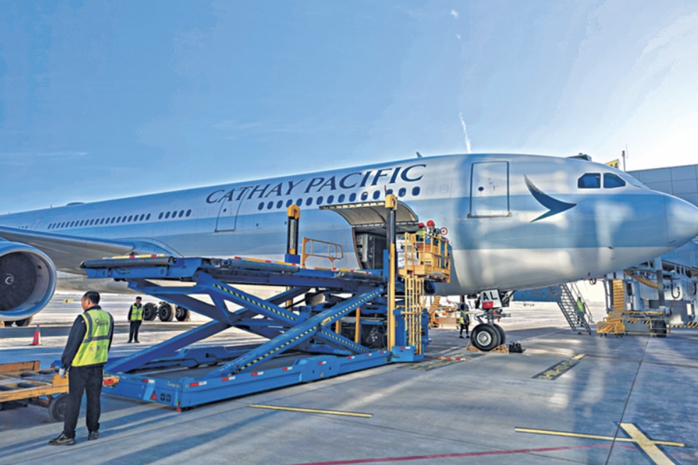 乌鲁木齐天山国际机场机坪装卸团队保障香港国泰航空公司宽体客机运输(7月12日摄)。 □新疆机场集团供图