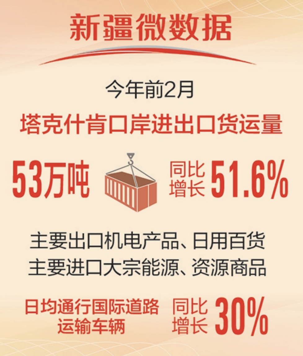 目前,塔克什肯口岸日均通行国际道路运输车辆251辆次,较去年同期增长30%。随着“智慧海关”建设的深入推进,口岸正不断提升贸易便利化水平,扩大进出口规模,为区域经济发展注入新的活力。