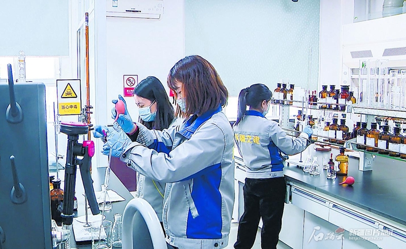 1月12日,在新疆交通检测认证有限公司科技研发部,工作人员正在进行路基材料的化学分析实验。 □高轩摄