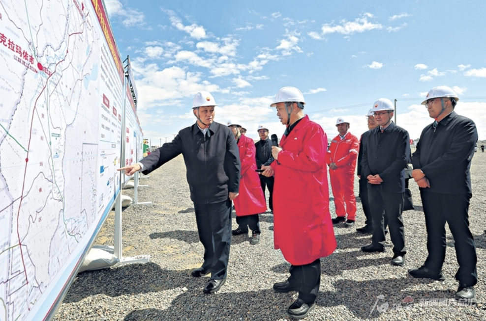 马兴瑞来到克拉玛依风城油田高温光热利用先导试验项目建设现场,了解光热制蒸汽驱动稠油开采试验进展和应用前景等,听取油气生产用能清洁替代、新能源规划发展等情况介绍,强调要统筹油气保障供应与绿色低碳转型,积极拓展油气与新能源融合发展路径,推进绿色油气田示范建设,加快油气产业转型升级。马兴瑞还详细询问油田油气生产进展成效,希望企业着眼保障国家能源安全,持续推进油气勘探开发和增储上产,强化重点产能项目建设,有效推动油气增产保供。