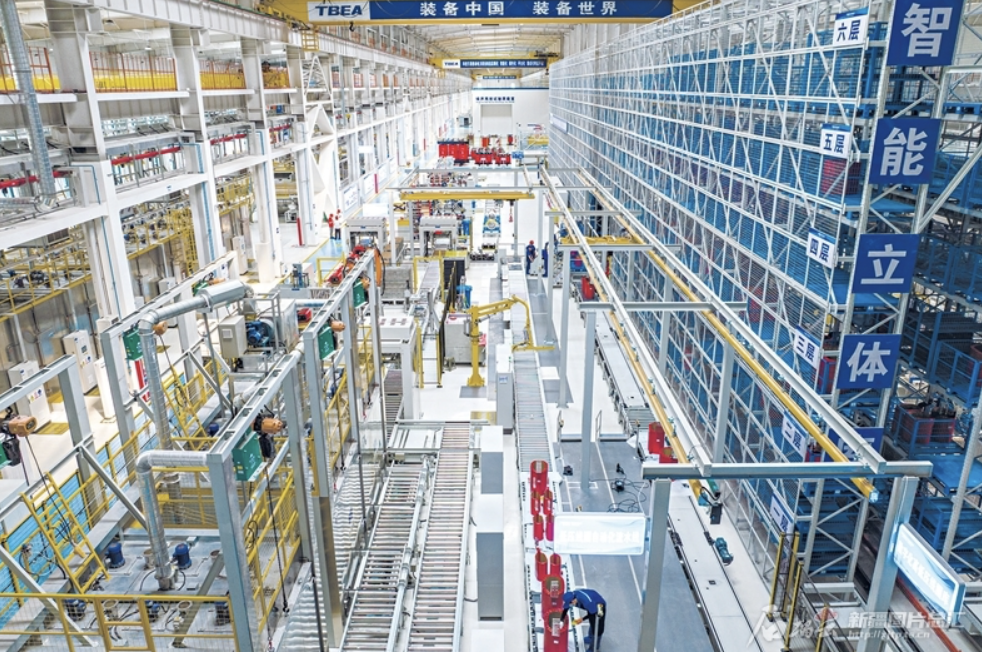 2月28日,昌吉市特变电工智能电气有限责任公司数字化干式变压器生产车间,工作人员在生产线上作业。 何龙摄