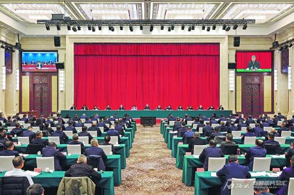 2月26日,新疆南疆工作会议在乌鲁木齐召开。自治区党委书记、兵团党委第一书记、第一政委马兴瑞出席会议并讲话。 □石榴云/新疆日报记者崔志坚摄