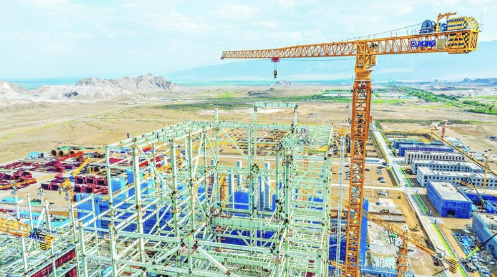 国家能源集团新疆电力博州2×66万千瓦煤电项目建设现场(7月10日无人机摄)。目前,该项目升压站、供热首站等已全面开工,计划2026年投产。 夏特克·海拉提摄