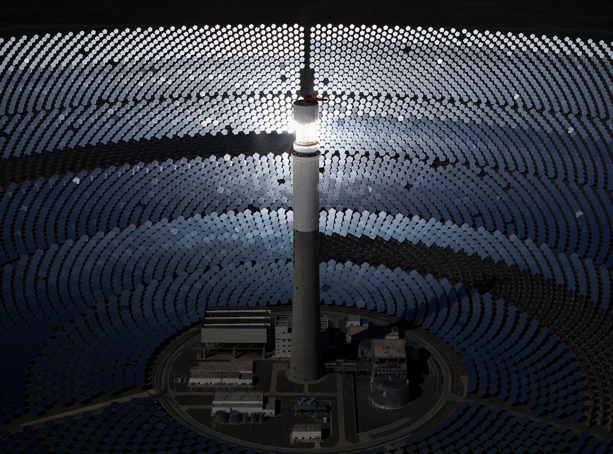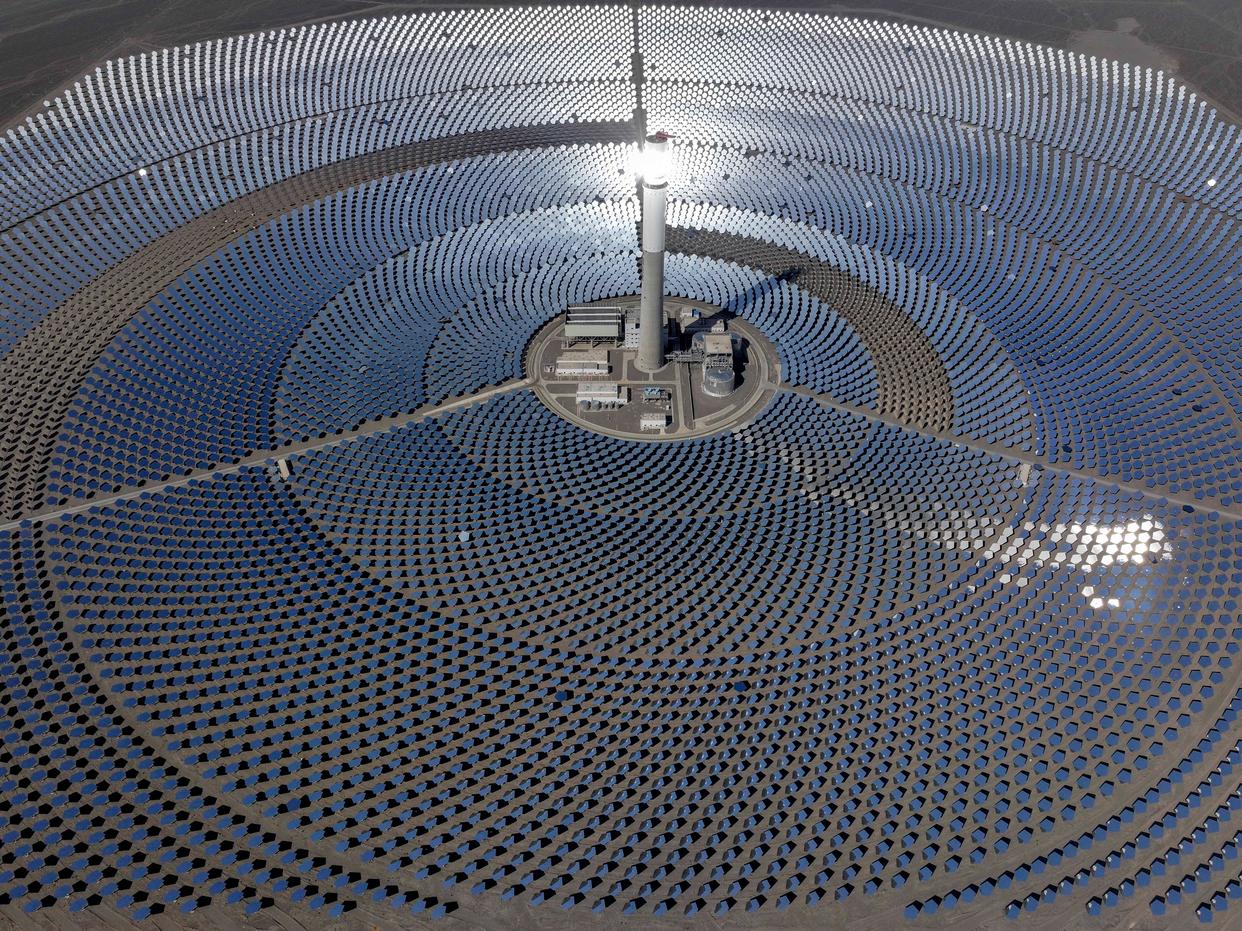 位于新疆哈密市伊吾县淖毛湖镇的国家光热示范项目——熔盐塔式50兆瓦光热发电站(9月12日摄,无人机照片)。 新华社记者 胡虎虎 摄