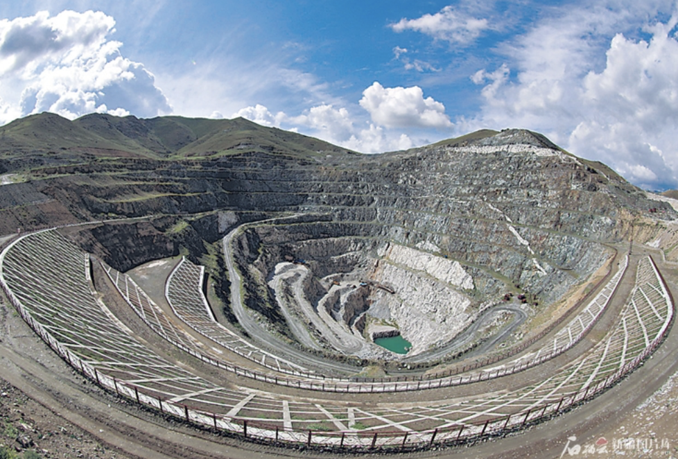 可可托海矿区三号矿坑全景(6月18日摄)。 傅轩摄