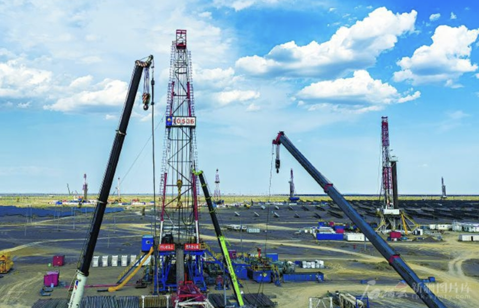 6月10日,在新疆油田公司百口泉采油厂百21井区新建产能开发区块,钻井队队员在钻井平台上作业。6月是新疆油田公司夺油上产的黄金时节。如火的骄阳下,新疆油田公司向着2025年油气当量2000万吨生产目标发起了冲锋。 闵勇摄
