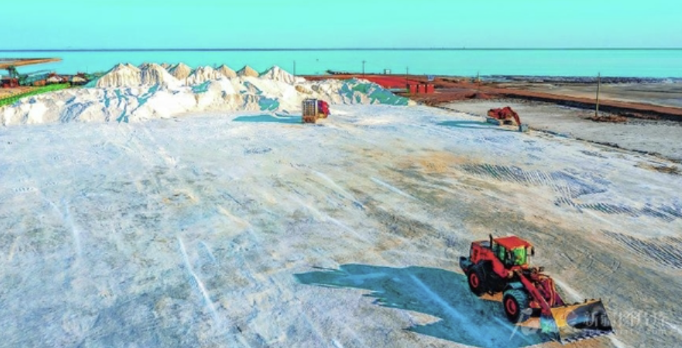 工人在和布克赛尔蒙古自治县宏达盐业有限责任公司作业(5月5日摄)。该公司作为国家在新疆确定的食盐定点生产企业之一,担负着伊犁、阿勒泰、塔城等地的食用盐、小工业用盐供应任务,年生产能力达300万吨。 田国建摄