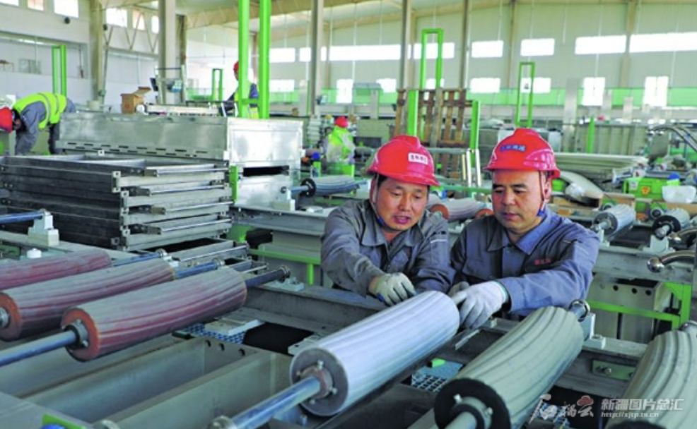 4月28日,工人在新疆信达技术有限公司额敏县铝电解电容器用中高压化成箔项目现场进行安装作业。该项目是塔城地区重点固投项目,今年5月底投产后,可年产化成箔6000万平方米。 柳鹏 摄