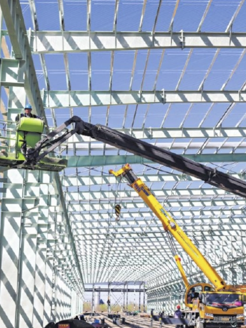 4月21日,工人在昌吉国家高新技术产业开发区兴通智能制造产业基地建设现场施工。该项目计划建设两期智能生产厂房,预计建成后可年产钢结构构件8万吨,将成为西北地区重要装配式建筑产业基地。 陶维明摄