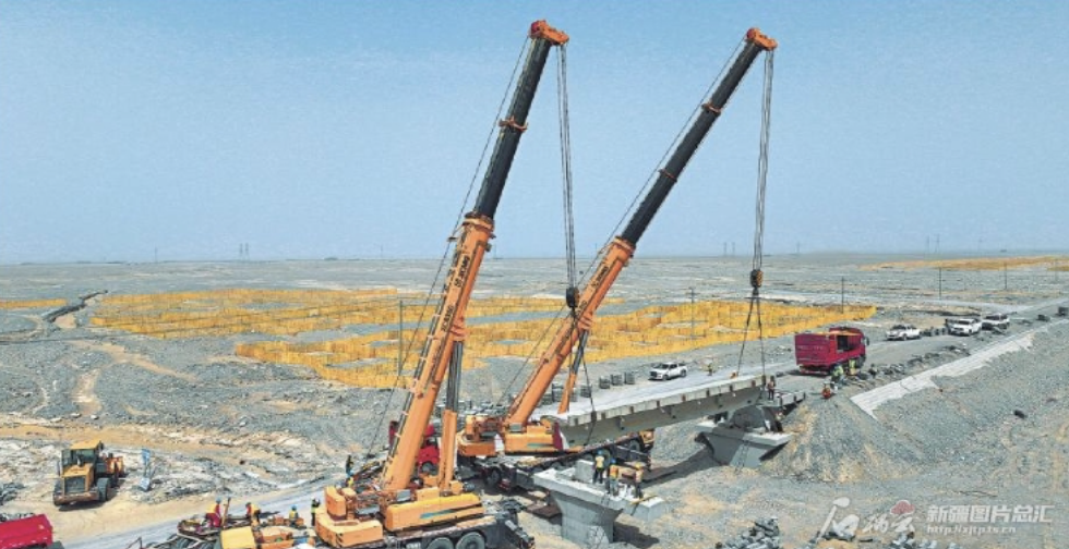 4月8日,工人在罗若铁路米兰至罗中段施工现场作业。近日,由中铁一局承建的该项目2025年首孔T梁成功架设,为后续轨道铺设工作奠定了坚实基础。今年以来,该项目已完成部分制梁、架梁及站线铺轨任务,罗若铁路建设正加快推进。赵树明 摄