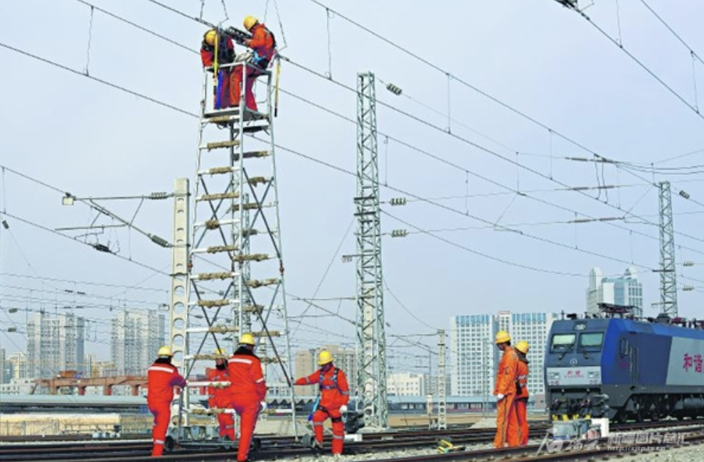 近日,工作人员正在检查库尔勒站铁路接触网供电设备。为助力“杏花专列”“银发旅游列车”开行,中国铁路乌鲁木齐局集团有限公司库尔勒供电段开展供电设备春检工作,及时消除隐患,确保辖区铁路运输安全畅通。 李胜利 摄
