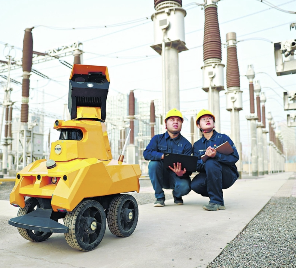3月17日,国网喀什供电公司变电运维中心技术人员在220千伏深喀变电站调试智能巡检机器人。该机器人具有红外、录音、视频识别等检测功能,实现了对变电站内电力设备全天候自主巡检。 王康摄