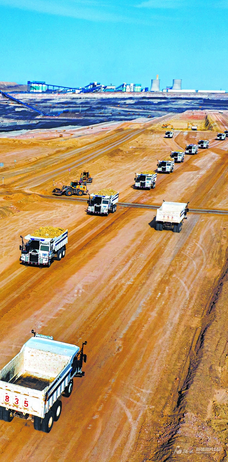 3月16日,位于新疆准东经济技术开发区的国家能源集团新疆能源有限责任公司准东露天煤矿,无人驾驶矿卡排队运送剥离土方。目前,该开发区13家煤矿企业共投入500余辆无人矿卡作业。 何龙摄