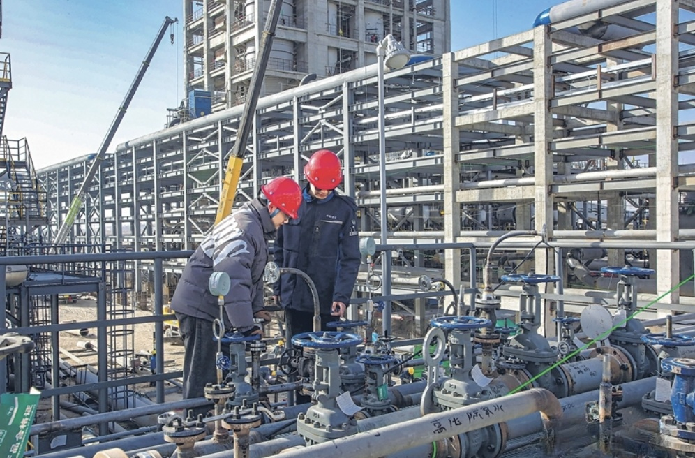 近日,技术人员在新疆中和合众新材料有限公司年产百万吨煤制醋酸及下游产品一体化项目现场调试设备。