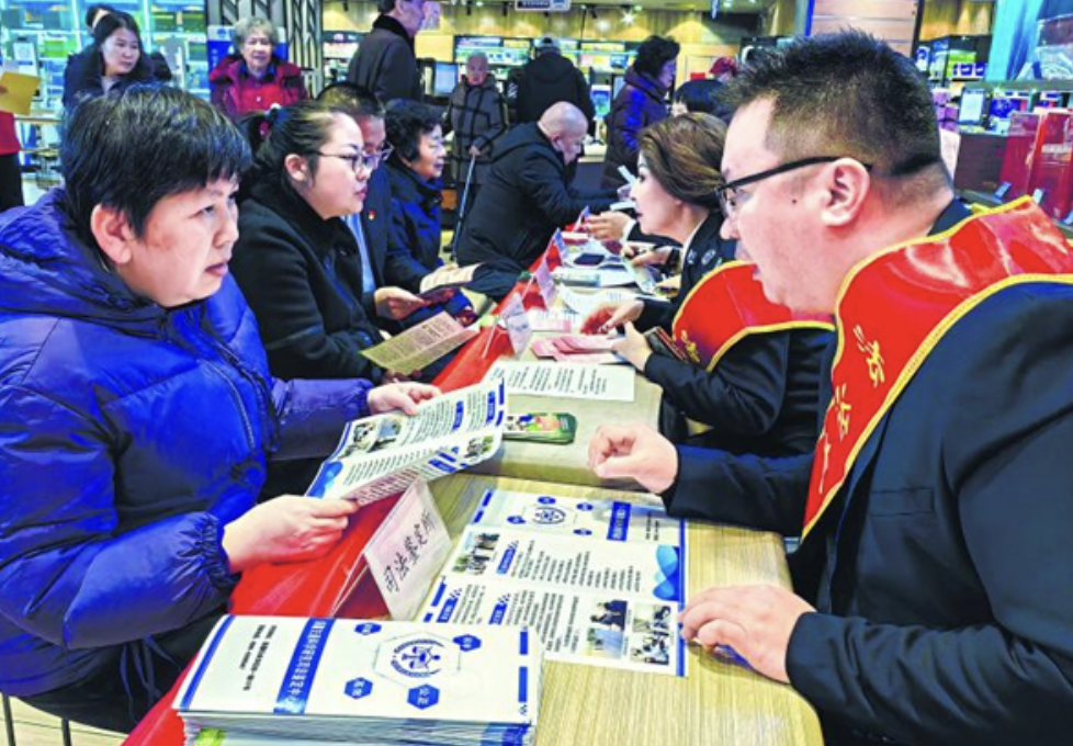 3月12日,在“3·15”国际消费者权益日法治宣传活动现场,新疆华通交通事故物证司法鉴定所工作人员向市民宣传交通法规安全知识。 石榴云/新疆日报记者李雄心 摄