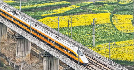 3月13日,高速综合检测列车行驶在渝厦高铁重庆段(无人机照片)。