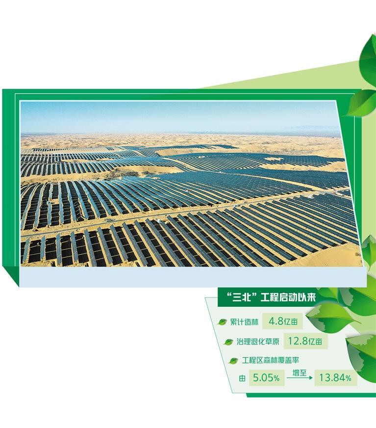 “三北”工程是事关国家生态安全和中华民族永续发展的重大国家战略。当前,“三北”工程已进入六期建设。2024年,国家安排超长期特别国债用于支持“三北”工程,更加浓郁的绿色正在北疆大地铺展开来。