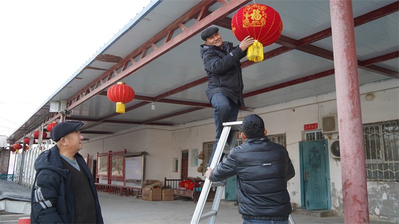 村民们在加工厂挂起了红灯笼,迎接春节。麦麦塔乌拉.麦提萨比尔摄